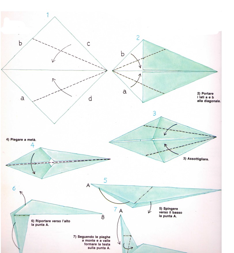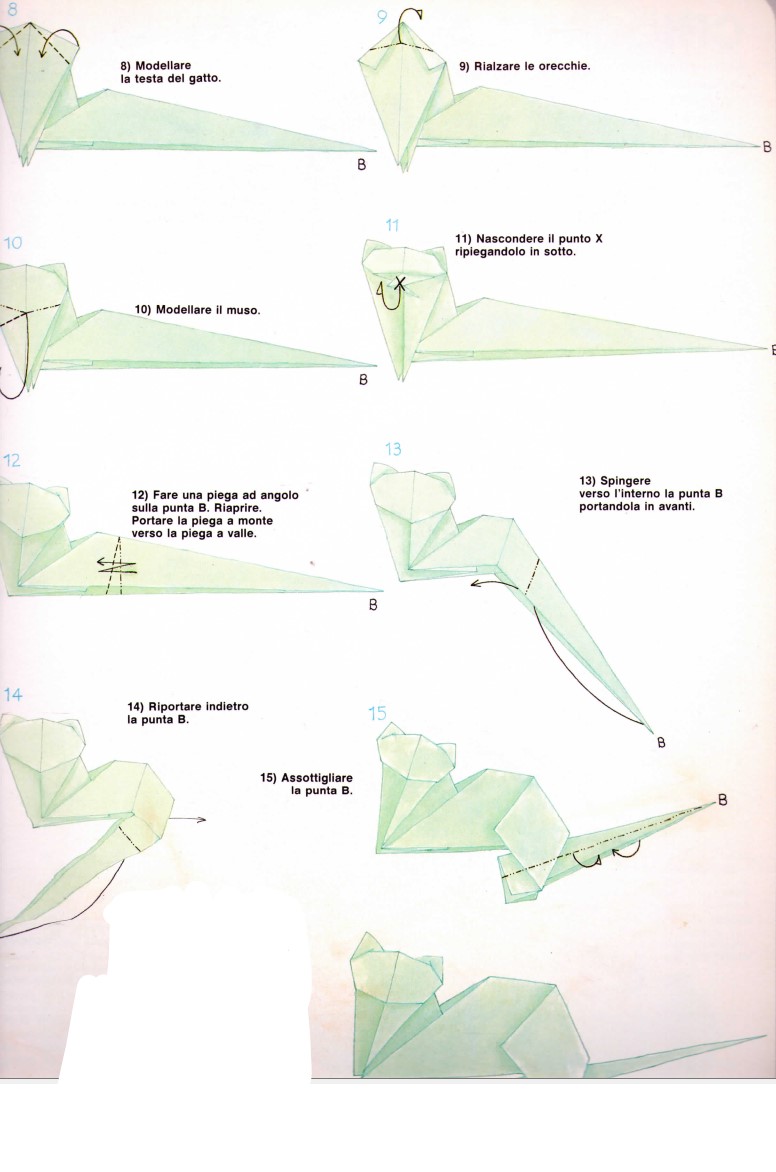 7) Seguendo le pieghe a monte e a valle formare la testa sulla punta A.