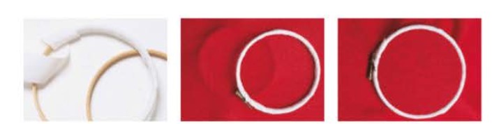 Appoggiate sul cerchio più piccolo il tessuto disegnato. sovrapponete il cerchio più grande con la vite allentata, premete per tendere bene il tessuto e stringete la vite perché rimanga in posizione.