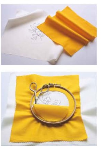 Potete utilizzare il telaio anche per ricamare una parte molto vicina ai bordi, aggiungendo al lavoro una striscia di stoffa supplementare. applicata con una cucitura a macchina o con punto filza lavorato molto fitto. Anche se dovete ricamare una forma